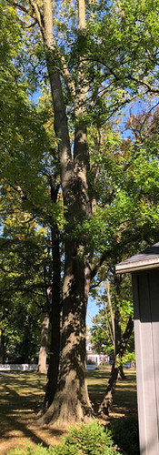 In the pictures below you will see the two trees we were able to remove with these funds. A Hackberry that was threatening the Speed Cabin was the first to be removed. The tree was splitting down the middle and the side that was most likely to go first was headed towards the cabin and the trees clustered around its northeast side. The tree to be removed next was a large Ash tree on the East side of Lane Place, right along the gravel drive. The upper portion of the tree was dead wood and the tree had suffered from the attentions of the emerald ash borer. Due to its proximity to the historic home and potential parking areas it was deemed another high risk tree.
